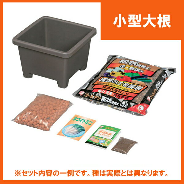 届いてスグに始めれるフルセットキット!栽培セット 小型大根 YSS-9A【大人向け】 ダークブラウン 価格: 1,180円 レビュー評価:0.0 レビュー数:0 【商品説明】*コンテナ菜園に必要なキットが全て揃った栽培セットです。*野菜づくりを手軽に体験することができます。*ガイドブック付で、初心者やお子様でも安心して栽培することができます。【セット内容】・足付角型プランター9号・ゴールデン粒状培養土5L・栄養剤20g・鉢底石約1L・タネ1種・ガイドブック※子供向けと大人向けの違い”子供向け”は成長の記録がつけやすい根菜・実物野菜の種のセットと成長記録のつけれるガイドブック付きです。”大人向け”はサラダに最適な根菜・葉物野菜の種のセットと栽培方法を詳しく解説したガイドブック付きです。【商品サイズ】幅275×奥行270×高190mm【材質】プランター:ポ Supported by 楽天ウェブサービス |
